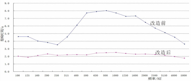 農(nóng)業(yè)大學新校區(qū)建設工程項目中多功能廳建筑聲學改造由我公司承擔,整個大廳共2000余平米,層高大于10米,原廳內(nèi)混響時間嚴重偏長,中高頻混響時間大于6s,嚴重影響了正常使用。客戶要求盡量控制造價及降低工程量,我公司在不改變現(xiàn)有裝飾風格情況下,通過增加天花空間吸聲體使混響時間降到2s以內(nèi),達到了良好的使用條件,工程取得圓滿成功。